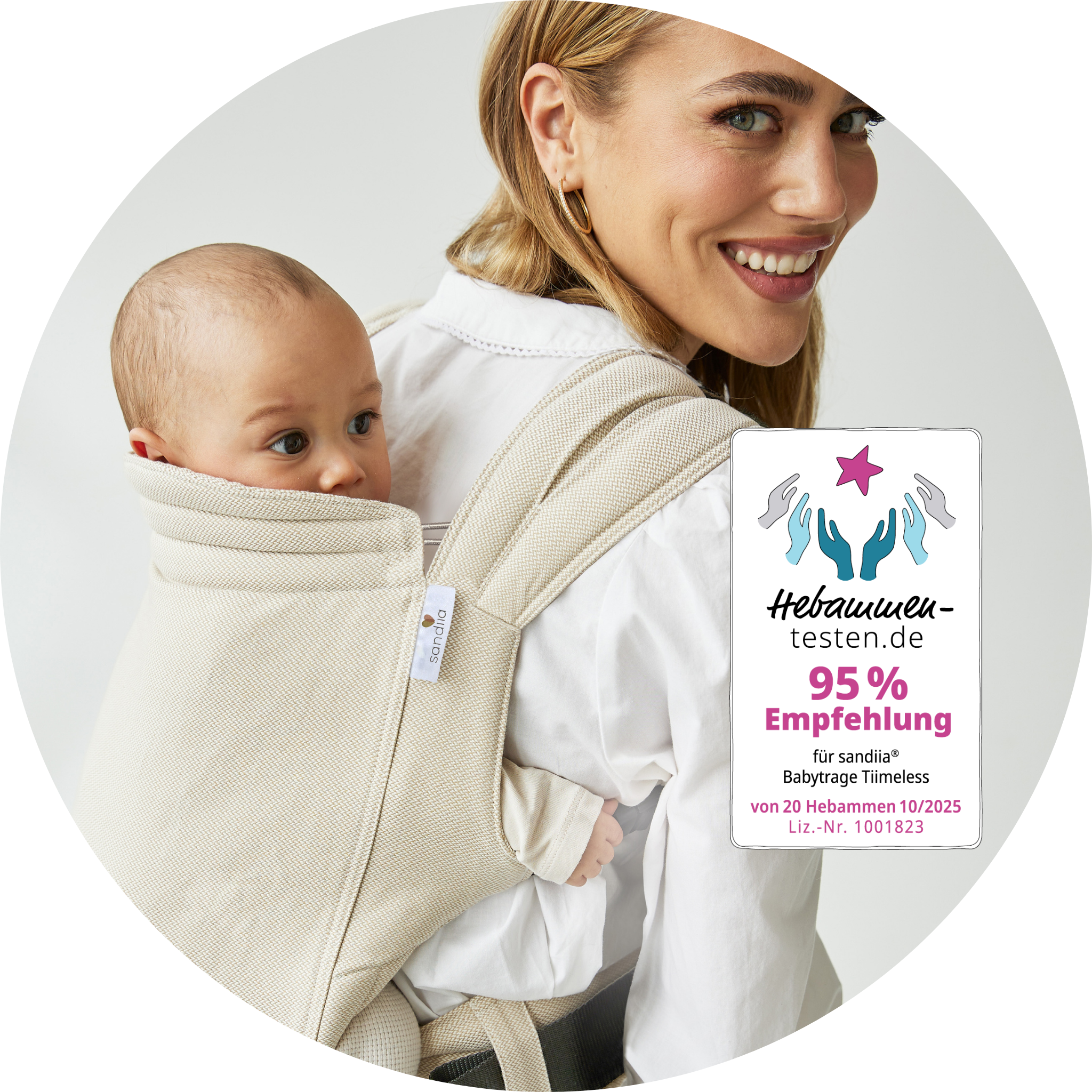 95 % der Hebammen empfehlen unsere sandiia® Babytrage Tiimeless!