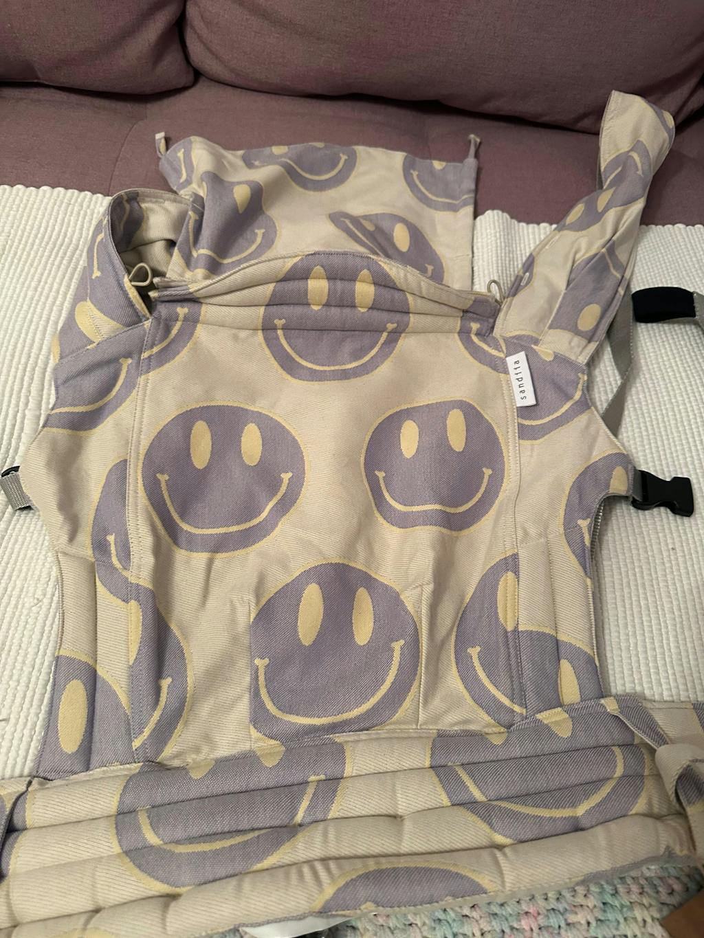 Thank you for taking the time to leave us such a lovely review. We're so happy to hear that you love the design and fabric of our Sandiia® Babytrage Tiimeless Smiile carrier. We understand that sometimes it can be tricky to place the baby comfortably, but we would be more than happy to book a consultation with you to help fix any issues you may be having. Don't hesitate to reach out to us for assistance. Thanks again for your support!