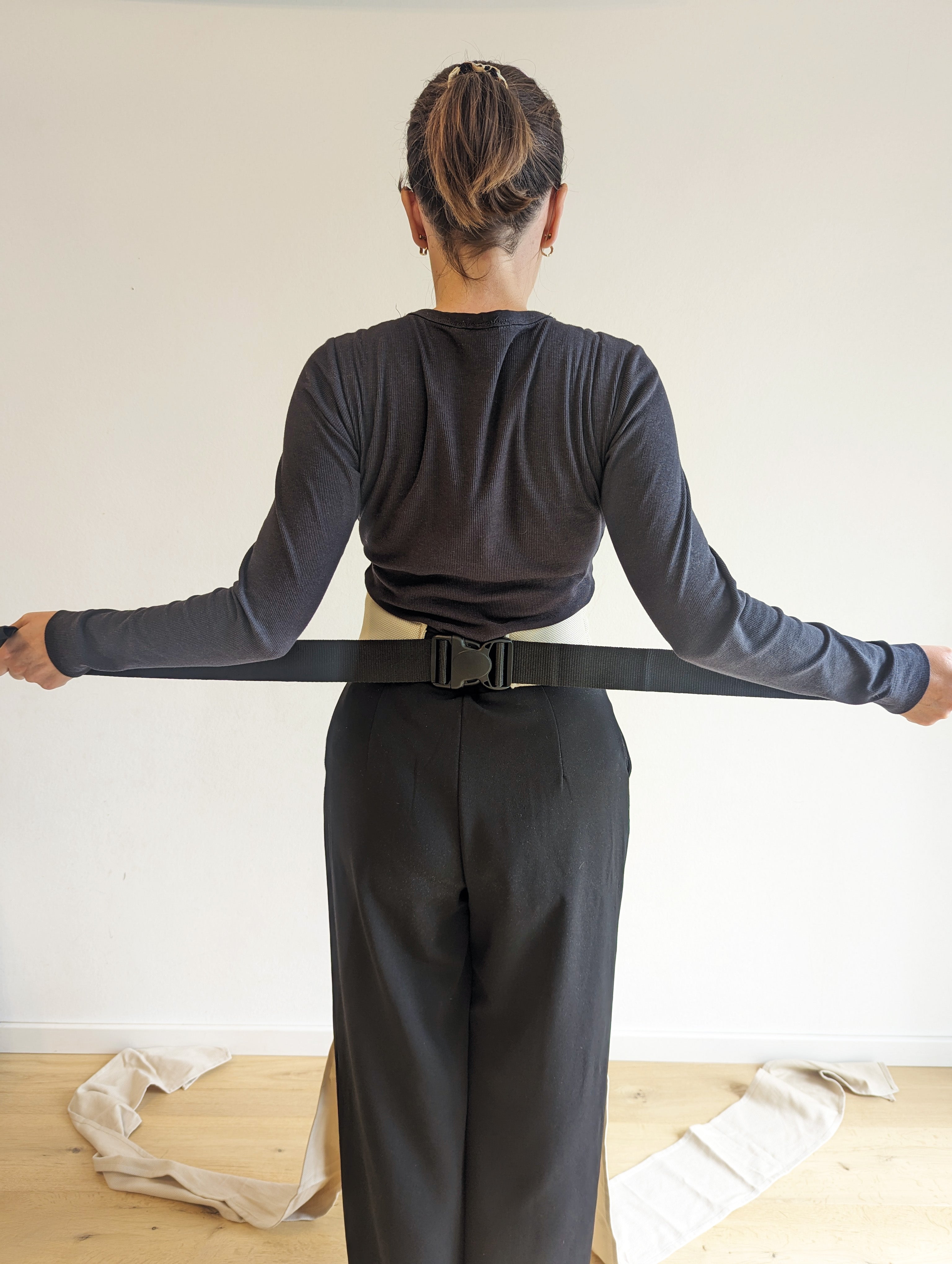When putting on the hip belt, make sure that the carrier sits centrally (i.e. not shifted to the right/left) and that it is better to place it a little too high than too low.