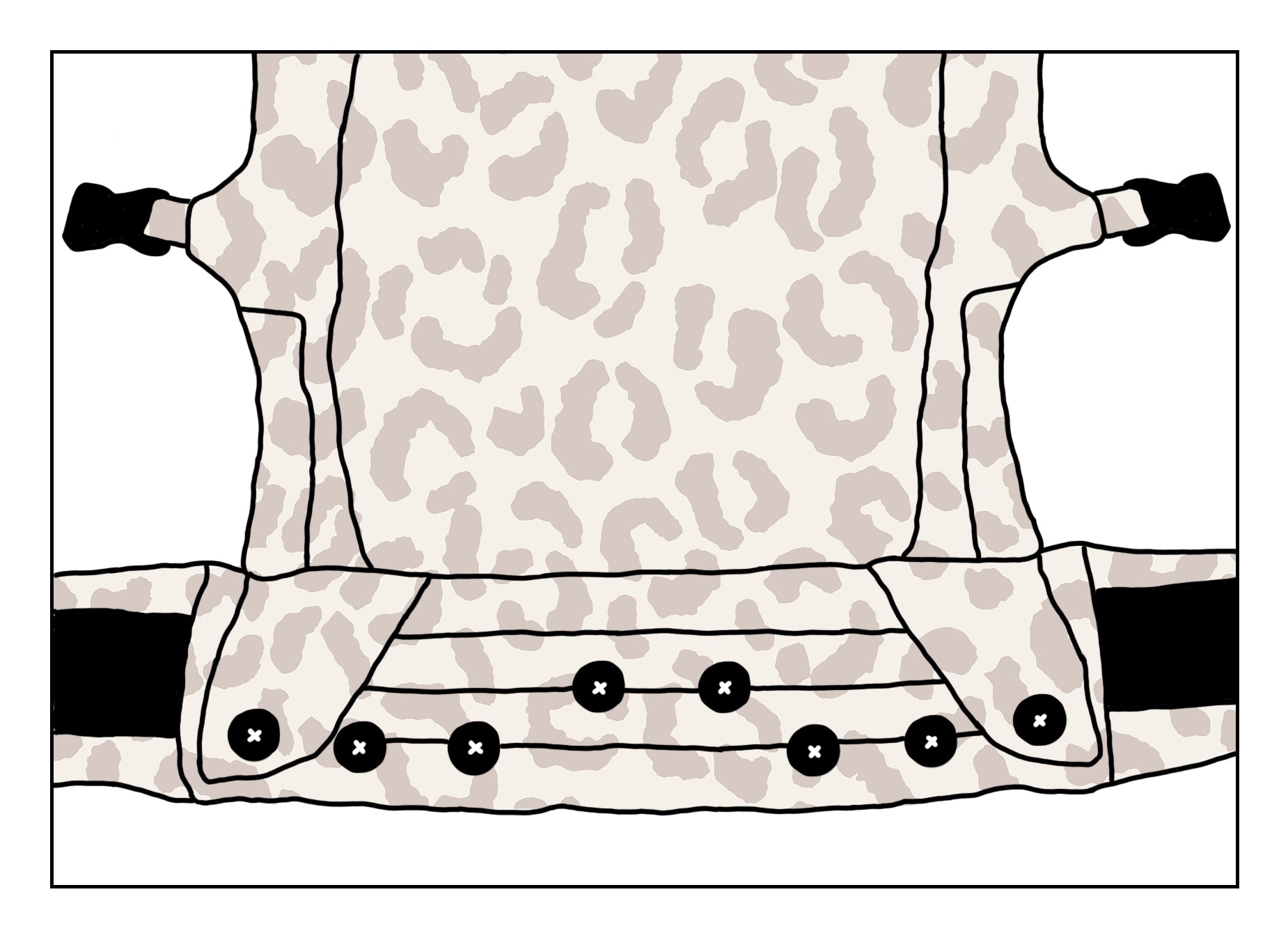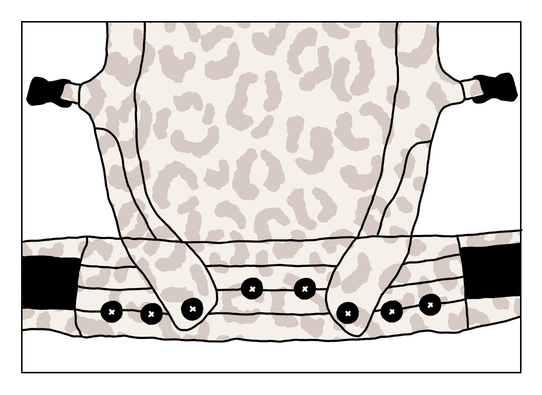 If you notice that the bridge is too narrow, you can use the 3rd button from the outside from about 4 months. Now you no longer have to fold down the leg openings.