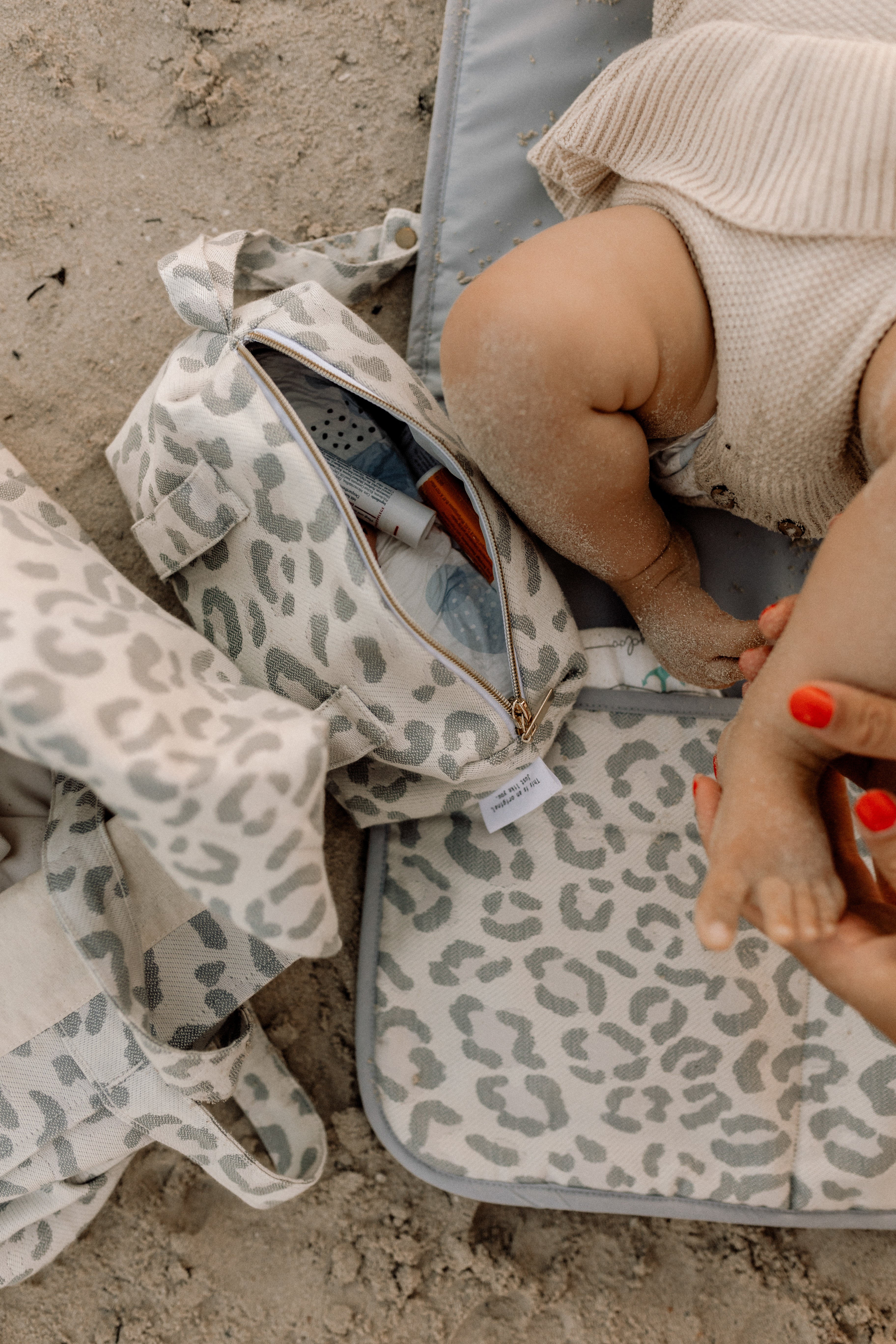 To match the sandiia pads, you can also get our shopping bag - a compact diaper bag that you simply attach to the baby carrier . Our diaper changing pads can also be conveniently stored in it.