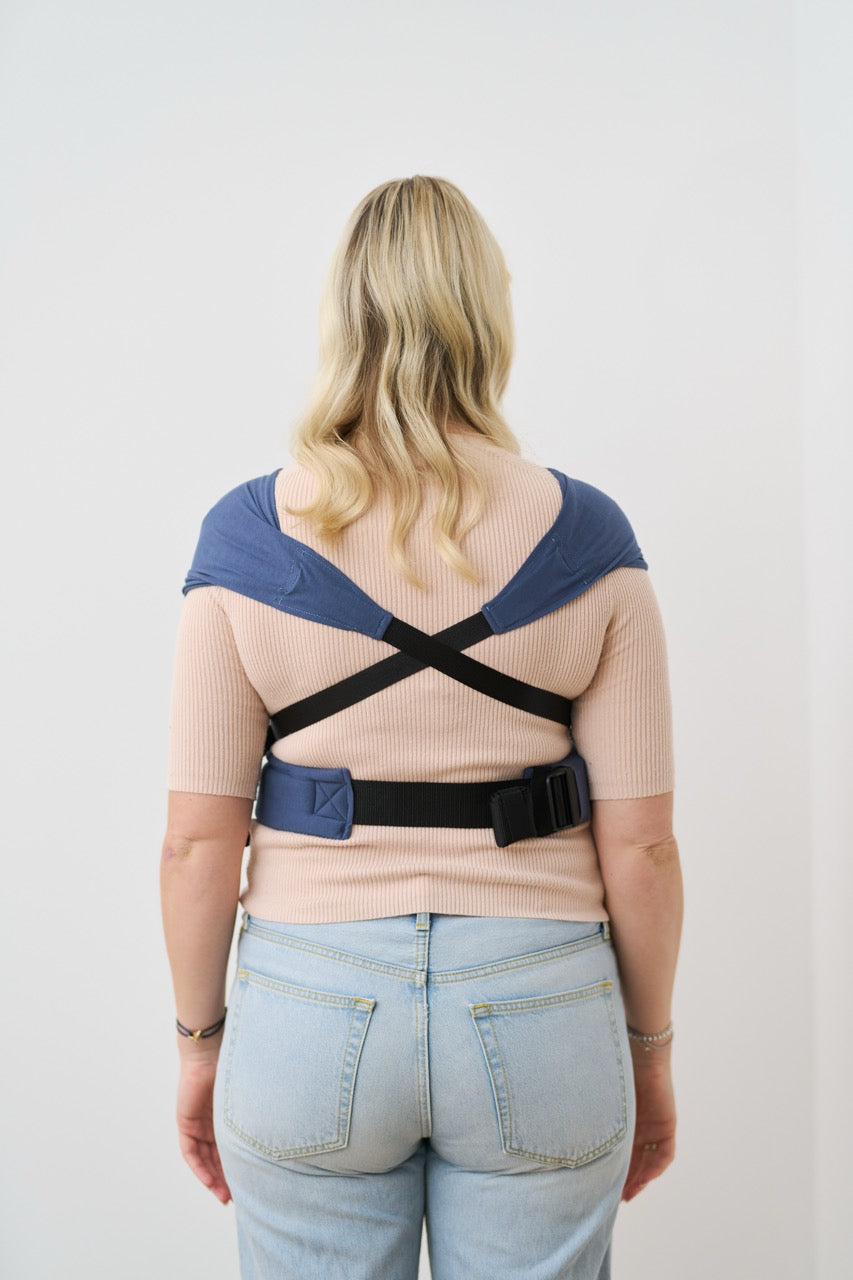Achte darauf, dass sich die Träger im Rücken tief unten kreuzen und die Schulterbereiche angenehm aufgefächert sind.