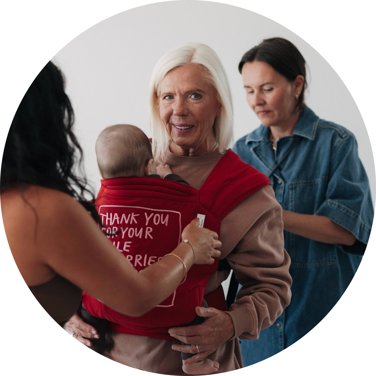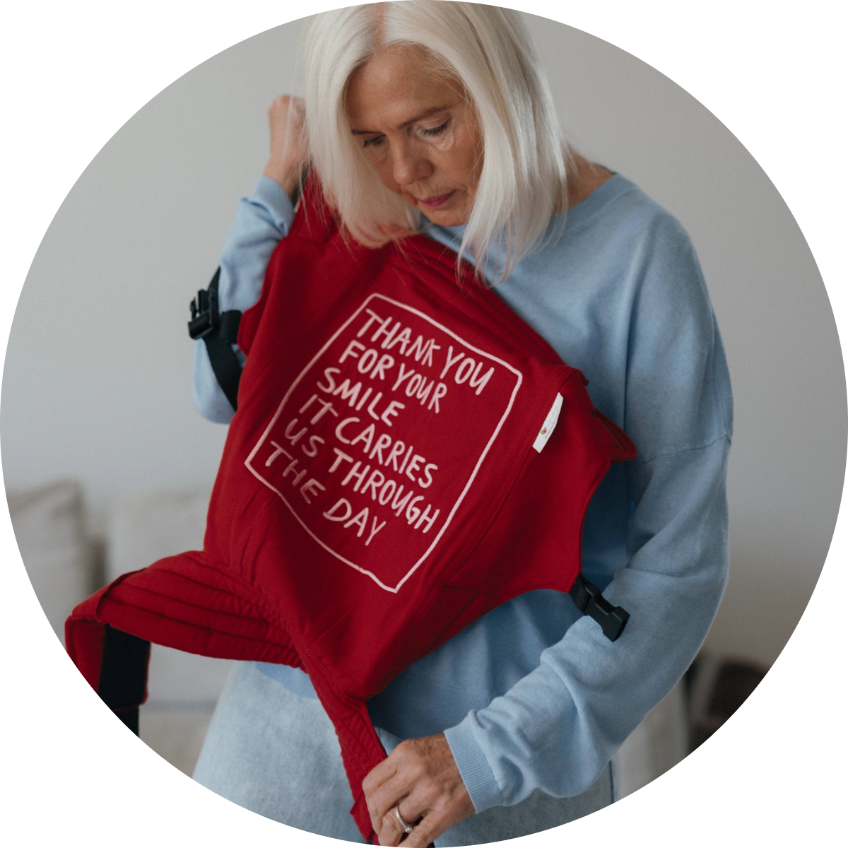 Besonders wichtig war uns, dass sich Babys in der Trage sicher gehalten und emotional verbunden fühlen und dass sich Menschen, die einem mit der Babytrage begegnen eine Botschaft erhalten. Dabei wurde Heike vom Heede kreativ unterstützt von der Künstlerin Elisa Klinkenberg, die sowohl bei der Auswahl des Spruchs auf der Trage als auch bei gestalterischen Details mitgewirkt hat. Ihre künstlerische Sensibilität und ihr feines Gespür für Sprache und Symbolik haben dem Produkt eine weitere emotionale Tiefe verliehen. So wurde die Trage nicht nur zu einem funktionalen Begleiter, sondern zu einem echten Herzensobjekt.
