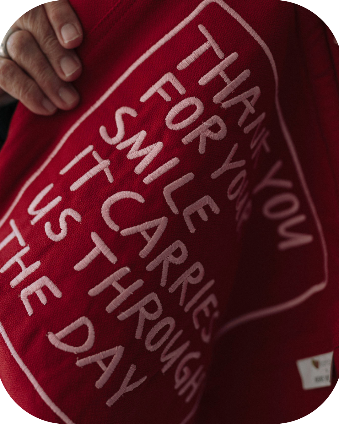 Eine hochwertig gestickte Botschaft, die jedem ein Lächeln in's Gesicht zaubert.